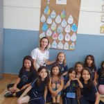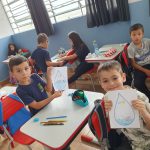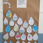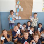 A professora juntamente com os alunos do 1º ano D trabalharam sobre o Dia Mundial da Água. Primeiramente conversaram sobre a importância e a utilidade da água para todos os seres vivos. Em seguida pediu para que os alunos desenhassem em uma folha de sulfite uma gota grande de água e no interior dela desenhar algo relacionado ao dia e ao tema trabalhado. Após o registro do desenho confeccionaram um painel para ser exposto em sala: Se você economizar, a água não vai faltar.
