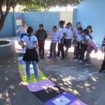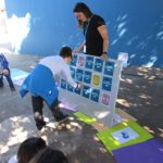 Jogo de memória gigante: os alunos foram divididos em 2 grupos onde cada participante teria sua vez de jogar. Vencia o jogo o grupo que mais imagens conseguisse adquirir. As imagens eram sobre o meio ambiente.