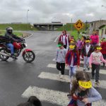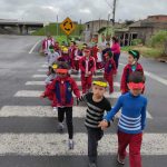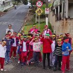 Os professores juntamente com os alunos realizaram um passeio no quarteirão da escola com o objetivo de vivenciar, conhecer e se conscientizar para segurança dos pedestres no trânsito. No momento simularam ações de segurança com o uso da faixa de pedestre, exploraram as placas e outros sinais.