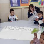 Realizamos uma roda de conversa sobre a importância da água em nosso dia a dia. As crianças participaram ativamente, citando usos e refletindo sobre atitudes para evitar o desperdício. Em seguida, confeccionamos coletivamente um cartaz com dicas de como economizar água, registrando por meio de desenhos e frases simples. A atividade despertou interesse e consciência nas crianças sobre a preservação desse recurso tão importante.