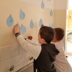 Essas gotas com as dicas foram coladas próximos aos dois bebedouros existentes na escola.