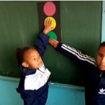 Dinâmica sobre os nomes das placas de trânsito dando sequência à aula anterior sobre o semáforo. Nesta atividade, os alunos  foram separados em grupos de meninos e meninas.  Fiz uma linha de partida na qual, a cada vez, ficava um menino e uma menina. Ao meu sinal, os alunos saíam correndo e quem chegasse primeiro e tocasse a cor escolhida, deveria falar para todos qual o nome da cor e o que ela significava no trânsito.