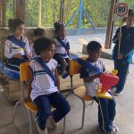 Nesta simulação colocamos as crianças como se estivessem em um carro .