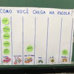 Estudaram os diferentes meios de transporte, onde andam e o que carregam, fizeram cartazes com gráficos para observar os meios de transporte utilizados pelos alunos para chegarem até a escola.