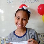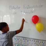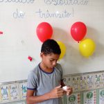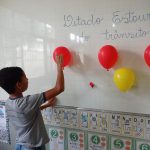 Logo após, solicitou que cada aluno fosse ao quadro estourar um balão e ler para seus colegas qual era a regra de trânsito estava dentro do balão.