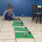 Nesta atividade exploramos juntamente o tema desenvolvido na semana do trânsito com o conteúdo numerais, visto que os números estão presentes no cotidiano das pessoas e nas vias de trânsito são facilmente vistos e tem sua funções, então criamos as pistas para ensinar de forma lúdica e explorar a imaginação das crianças.