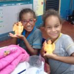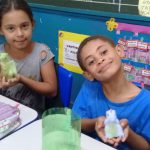 A professora Adriana Tomé com o intuito de trabalhar a valorização dos animais e a natureza , trabalhou o projeto “Meu Dinossauro, meu amigo”, onde cada criança recebeu um ovo de dinossauro, e o mesmo era colocado na água até se abrir e formar o bichinho.