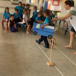 Os alunos assistiram à professora Ana Carolina explicar sobre a importância de um bom comportamento no trânsito, abordando aspectos como segurança, respeito às regras e cuidado com os pedestres e ciclistas. Durante a explicação, ela utilizou exemplos do dia a dia, como o uso correto da faixa de pedestres, a importância de respeitar o sinal vermelho e a necessidade de atenção ao atravessar a rua. Além disso, reforçou a importância do uso de cinto de segurança e da necessidade de os motoristas respeitarem os limites de velocidade. Ao final, os alunos tiveram oportunidade de discutir o que aprenderam e foram feitos perguntas para tirar dúvidas e entender melhor como eles, mesmo como pedestres, ciclistas ou futuros motoristas, podem contribuir para um trânsito mais seguro e consciente.