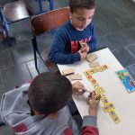 Os alunos utilizaram o dominó para aprender mais sobre as regras e placas de trânsito. Foi um sucesso, todos participaram com muita alegria. O jogo foi realizado em duplas. Regras estabelecidas, o jogo começou. Foi uma aula dinâmica e produtiva. Todos conseguiram entender a importância do respeito para com as placas de trânsito.