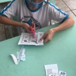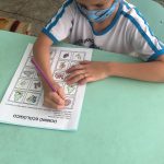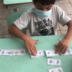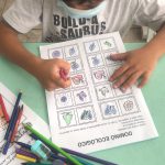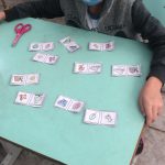 Os estudantes do 1° ano do fundamental realizaram o jogo do dominó ecológico, participando de toda sua confecção, pintando os desenhos das peças referentes à natureza (meio ambiente); depois recortaram os dominós e jogaram inicialmente sozinhos para aprender o jogo e depois em duplas, dividindo as peças igualmente, tentando casar os desenhos.