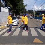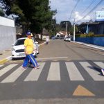 Os alunos, para dar mais ênfase ao trabalho em sala de aula, saíram às ruas para exercício em atravessar a rua utilizando a faixa de pedestre. Ande certo, ande na faixa foi o lema que levaram consigo. Andaram no entorna da escola, onde existem faixas de pedestres bem sinalizadas.