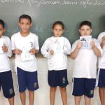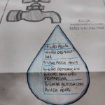 Cada aluno refletiu sobre suas ações no dia a dia para contribuir com a economia da água. Em seguida, escreveram em uma “gota” essa ação para ser compartilhada com os alunos das outras salas.