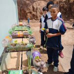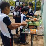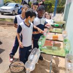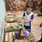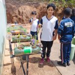 A construção da horta foi utilizada para abordar com os alunos a Educação Ambiental, educação da saúde , a necessidade da reciclagem e aspectos nutricionais, aprender a cultivar alimentos sem agrotóxicos para o consumo. Fizemos nossos canteiros aproveitando as garrafas descartáveis e colocamos a horta suspensa em um suporte de cadeiras velhas.