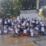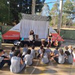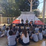 A Escola Marcílio Bondesan foi convidada a participar de uma ação do projeto Arteris, intitulada “Educação e Arte em Movimento”, realizada na quadra da Escola Yolanda Jorge.