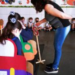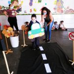 Durante a aula os alunos do pré 1 e pré 2 puderam se tornar um carro e reconhecer placas de trânsito, bem como as luzes do semáforo em uma brincadeira divertida, simulando uma vivencia real no trânsito, aprendendo na prática. Todos os alunos participaram de forma efetiva.