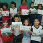 Em seguida, fomos para o pátio da escola e foi estudado na prática as placas. Os alunos manusearam cada uma das placas usadas e foram questionados sobre seus significados. Por fim, foi feito pelos alunos, através de desenhos, o registro da história.