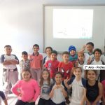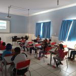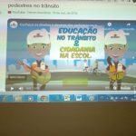 A professora passou aos alunos vídeos contendo regras de trânsito e a importância de respeitá-las para termos um trânsito seguro. Após a apresentação dos vídeos, a professora realizou uma aula dialogada com os alunos sobre o tema.
