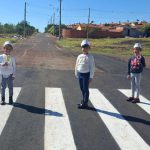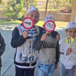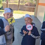 Os alunos do 2º ano confeccionaram placas de sinalização, exploraram o entorno da escola identificando sinais e falhas no trânsito e distribuíram panfletos para conscientizar a comunidade sobre a importância do respeito e da segurança nas vias.