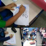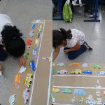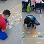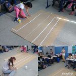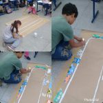 No terceiro e ultimo momento em uma folha de papel pardo, os alunos com tinta guache desenharam a rodovia, a faixa de pedestre, e sinalizar com o recorte do semáforo.