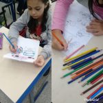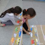 Expliquei para os alunos a importância que esse dois itens têm na nossa segurança. Também pintaram e recortaram pessoas para colar no trânsito atravessando na faixa, colaram placas de sinalização, ciclistas e outros.