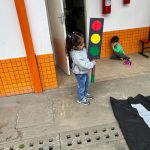 - Dia especial do trânsito: montagem de uma pista com tnt preto e branco para a faixa de pedestre, colocar as placas de trânsito e semáforo.