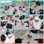 Nesta atividade abordamos em roda de conversa qual era o meio de transporte que eles utilizavam para vir a escola, então com destaque para duas crianças que relataram sobre irem para a escola de van escolar e o que eles observaram no trajeto de casa para a escola! Eles identificaram as placas de PARE/PARADA DE ÔNIBUS/PROIBIDO ESTACIONAR, outras crianças que veem para a escola a pé também relataram as mesmas placas. Cada criança completou as partes do ônibus escolar que estava faltando e ao desenhar as partes faltantes algumas crianças colocaram as pessoas com o cinto de segurança.