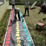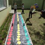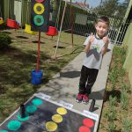 Jogo das cores: As crianças participaram da construção do jogo, pintando, recortando e colando. Após, conversamos novamente à respeito das cores do semáforo e sua importância para regras no trânsito e que a brincadeira também tem regras a serem respeitadas para a boa convivência entre os participantes.