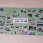 Nas aulas de Língua Portuguesa os alunos produziram cartazes que foram expostos pela Unidade Escolar e listas de ações importantes para a segurança no trânsito.
