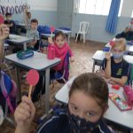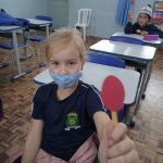 Atividade realizada com os alunos do 2° ano A, na Escola Municipal Bom Jesus de Mandirituba, a turma é formada por 20 alunos, no período da manhã. Através de roda de conversa dei início a aula conversando com as crianças sobre a importância do Maio Amarelo. Segui explicando que no trânsito, amarelo simboliza a atenção que os motoristas devem ter para rodar nas vias e, em diversas situações, o amarelo também simboliza a advertência e a necessidade de redobrar os cuidados ao volante. Dando sequencia realizei o Quiz sobre o trânsito, neste jogo as crianças deveriam escolher a resposta correta e erguer a plaquinha correta. Exemplo: Não é necessário usar cinto de segurança no banco de trás.