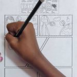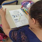 Na sequência, os alunos participaram de uma atividade de produção textual e artística, elaborando uma história em quadrinhos tendo a água como tema disparador. A proposta envolveu o planejamento da narrativa, criação de personagens, organização das cenas em sequência e construção de diálogos, articulando linguagem verbal e não verbal.