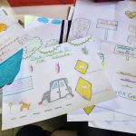 Esta atividade foi continuação da atividade do dia anterior “assistindo vídeos interativos”, em que após assistirem aos vídeos e discutirem os cuidados que devem ter com os animais nas estradas, foi a vez de criarem mensagens de cuidado com o ambiente para expor para outras crianças o que aprenderam!