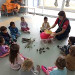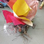 Recursos: Materiais naturais, galhos, pedras, papel colorido, papel celofane