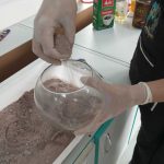 Recursos: Farinha de trigo, azeite, cacau, café, minhocas de brinquedo, recipientes plásticos, aquário de vidro