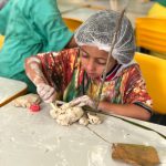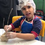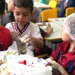 A professora realizou com os alunos uma atividades com argila para construção de esculturas e aproveitou e trabalhou os elementos da natureza, onde recolheram folhagens e objetos da natureza.