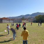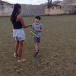Antes de sair para soltar as pipas, as professoras conversaram com os alunos sobre o assunto e eles também assistiram alguns vídeos de como é confeccionada a pipa e também de algumas crianças soltando.