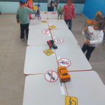 Nesta atividade prática, lúdica e divertida, as crianças participaram brincando, ensinando os super-heróis a respeitarem as regras do trânsito, sobre os pedestres e sobre algumas placas básicas, assim brincaram bastante e aprenderam sobre a importância de respeitar o trânsito, suas placas e sobre a gentileza com os demais.