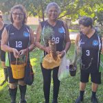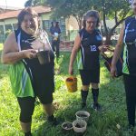 Após o jogo, as atletas fizeram um passeio pela escola, visitaram a horta e receberam as mudas pelas mãos dos alunos e do Sr. Roque Guerra , parceiro e responsável pela manutenção da horta da escola.