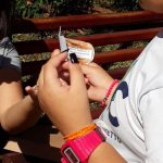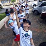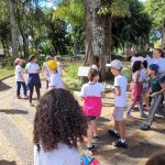 Depois, em uma praça do nosso município, conversaram com pessoas que ali passavam, falando da importância de plantar e das árvores e entregaram as sementes de girassol.