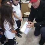 O Secretário Senhor Joziel ouvi com atenção a fala das crianças que além de fazer a solicitação do acendimento da pintura da faixa de pedestre de forma verbal, expuseram os conceitos de segurança que foram trabalhamos em prol ao Dia do Pedestre.