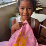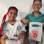 Após confeccionar e personalizar as sacolinhas de lixo para carro com carimbos de mãos nas cores do semáforo, os alunos receberam seus pais ou responsáveis para entregar pessoalmente as lembrancinhas. Cada sacolinha foi entregue com uma breve explicação do significado das cores do semáforo e da importância de manter o carro limpo e organizado.