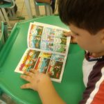 Reconto da história em quadrinhos ” A flor floriu a flora” com os personagens da turminha da floresta.