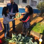 Os alunos desenvolveram as habilidades de plantio, cuidados e manutenção com a horta da escola.