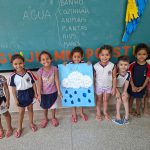 Em seguida, os alunos participaram da leitura da história A Gotinha Plim Plim, de Gerusa Rodrigues Pinto, proporcionando momentos de escuta, imaginação e reflexão sobre o tema. Após a leitura, a professora explicou de forma simples e adequada à faixa etária como acontece o ciclo da água, destacando a formação das nuvens e a ocorrência da chuva.
