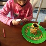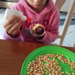 Com o objetivo de estimular a imaginação e a coordenação motora, nesta sequência de atividades com o tema festa junina, foi solicitado que os alunos confeccionassem uma espiga de milho utilizando rolos de papel higiênico, grãos de milho, cola, tinta guache e material verde que tivessem em casa e pudesse ser reutilizado. Desta forma além de concretizar a atividade os alunos aprenderam sobre a importância da reutilização de materiais para a sustentabilidade.