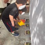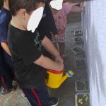 Nos inícios das aulas, sob orientação da professora, cada aluno irá regar sua planta.