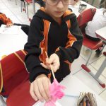 DEPOIS DE TRABALHAR A ESCRITA E LEITURA DE ADJETIVOS PARA AS MÃES CONFECCIONAMOS FLORES COM OS PALITOS E PAPEL CREPOM.