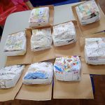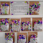 montagem do cartaz com o texto e o material confeccionado para exposição na escola.