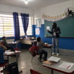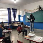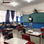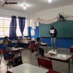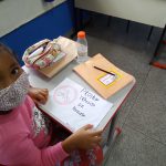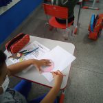 Na 4° aula nós estudamos algumas placas e os seus significados, fui mostrando as placas para eles e perguntava se eles sabiam o que aquela placa significa, alguns acertavam e outros não, fui falando a significado de cada uma e falando suas cores, todas as placas estavam sem cor, pois os alunos teriam que pintar da cor correspondente para na outra aula montar o painel.