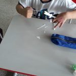 Foi realizada uma roda de conversa sobre a importância da sinalização, em seguida os alunos citaram os principais símbolos de sinalização. Depois foram apresentadas aos alunos os tipos de placas que podem ser divididas em 7 categorias: placas de regulamentação; sinalização de obras; advertência; indicação; educativas; atrativos turísticos e serviços auxiliares. Foi também apresentado a funcionalidade e característica de cada uma delas destacando as cores, ícones e formas diferentes. Logo após as explicações os alunos produziram algumas placas de regulamentação e apresentaram o significado e a funcionalidade de sua placa para os alunos da sala ao lado.