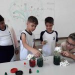 Os alunos do 2º ano C participaram de uma atividade experimental voltada ao estudo das plantas. Por meio de um experimento simples e visual, as crianças puderam observar o trajeto da água pelo caule até as folhas, compreendendo na prática a função de condução dessa parte tão importante da planta.